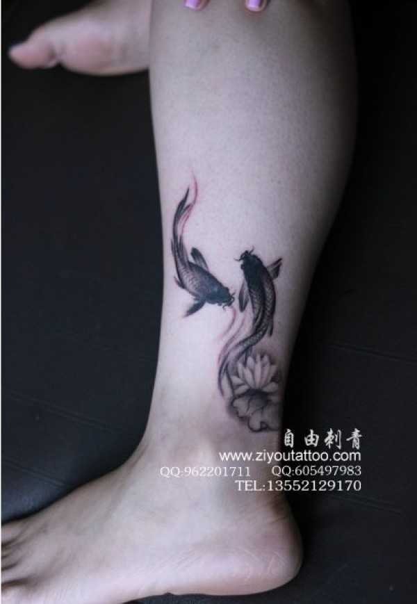 水墨鱼_腿部纹身图案大全_纹身图吧