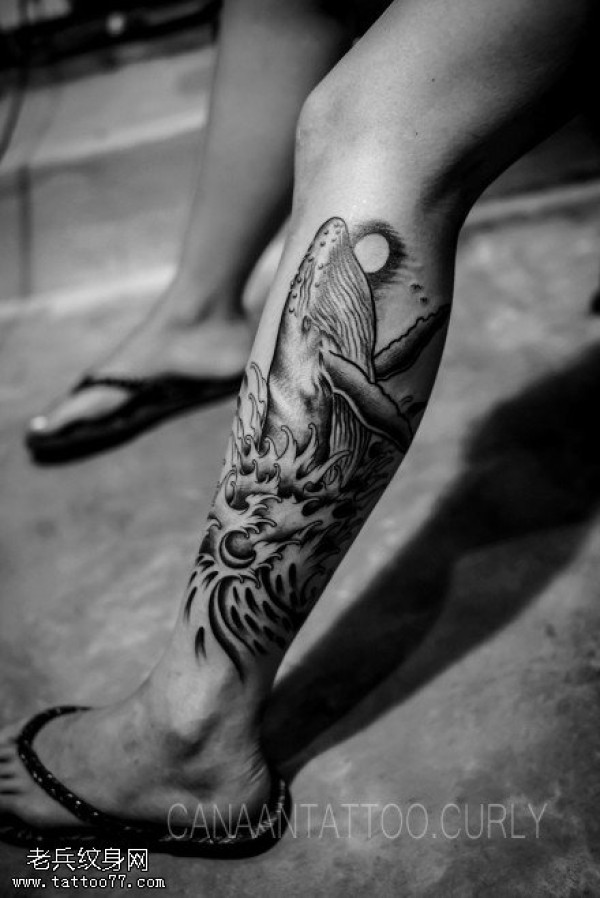 腿部鲨鱼纹身图案_腿部纹身图案大全_纹身图吧