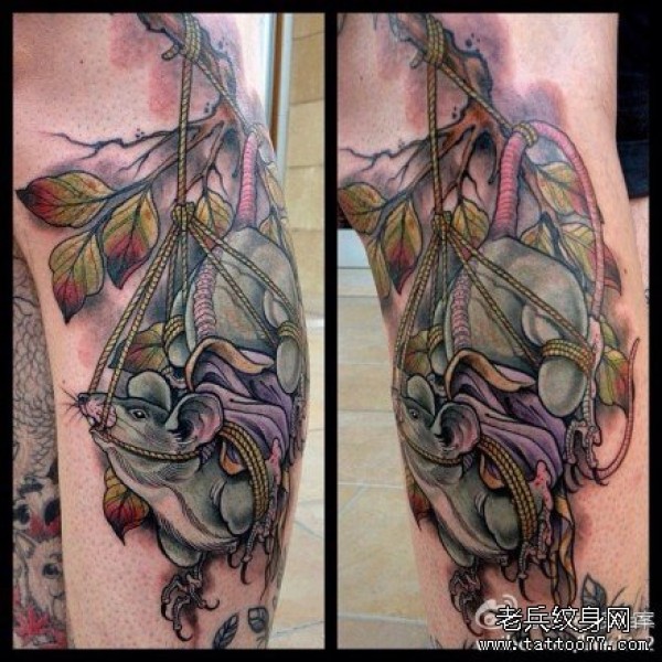 腿部一款经典潮流的老鼠纹身图案_腿部纹身图案大全_纹身图吧