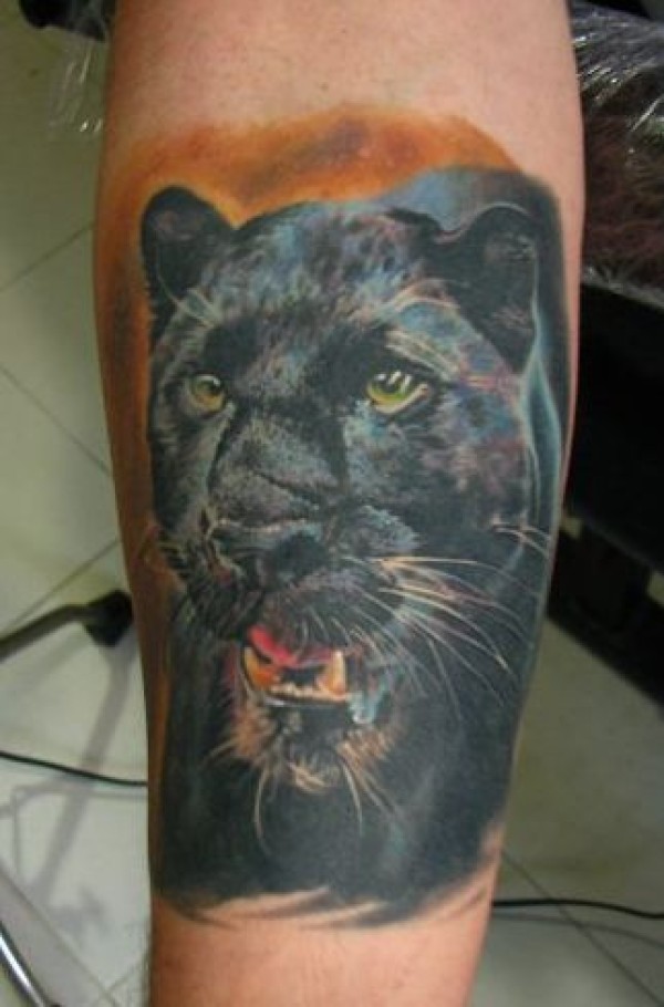 动物纹身图案腿部豹子黑豹纹身图案_腿部纹身图案大全_纹身图吧