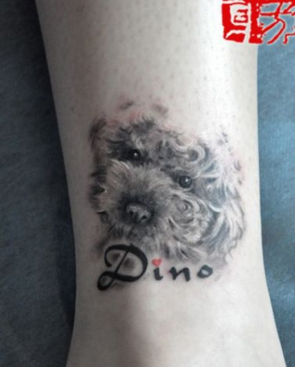 女孩子腿部可爱的小狗狗纹身图案_腿部纹身图案大全_纹身图吧