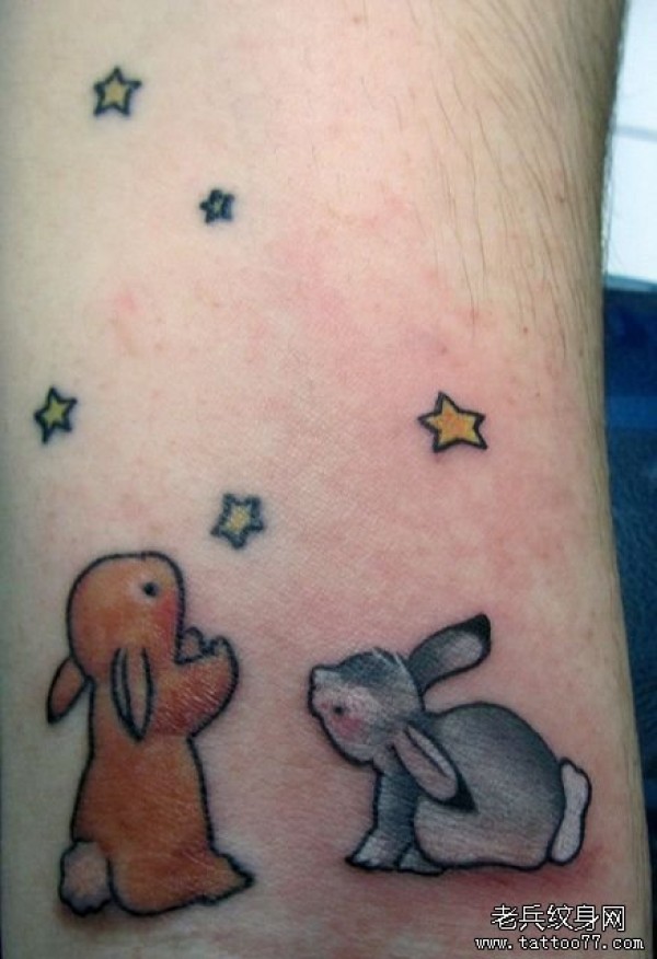 腿部超可爱的小兔子纹身图案_腿部纹身图案大全_纹身图吧