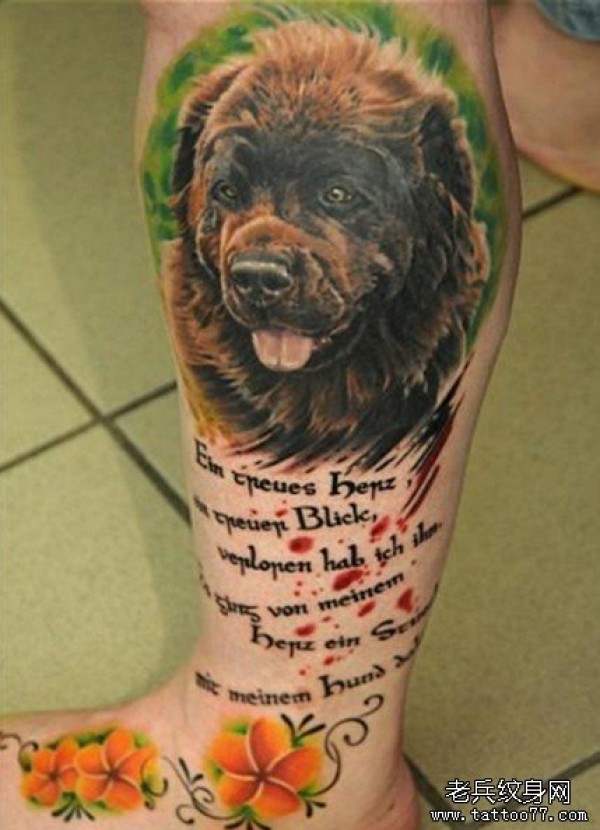 小腿上一款可爱小狗纹身图案_腿部纹身图案大全_纹身图吧