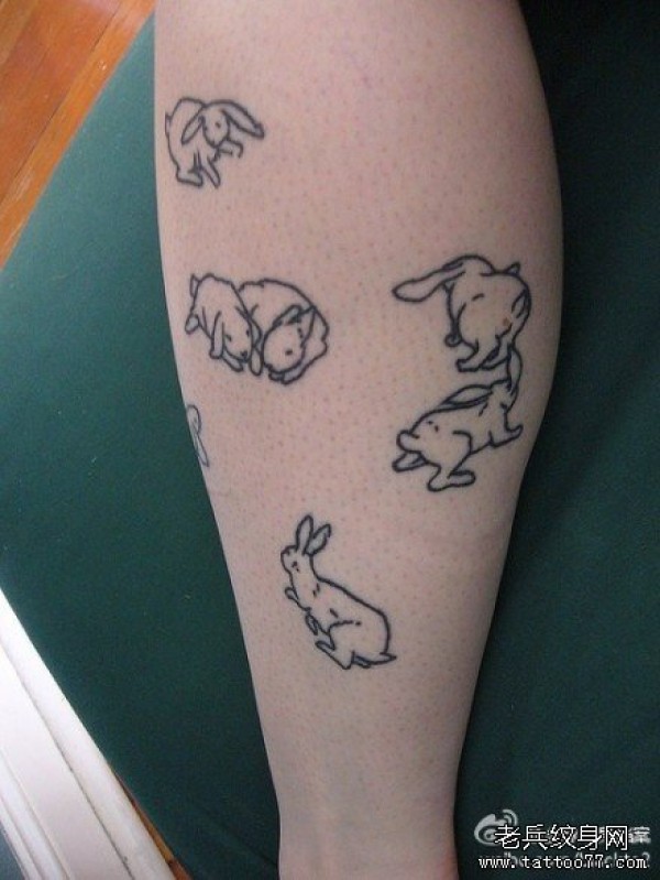 腿部简单可爱的小兔子纹身图案_腿部纹身图案大全_纹身图吧