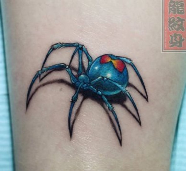 腿部好看的彩色蜘蛛纹身图案_腿部纹身图案大全_纹身图吧