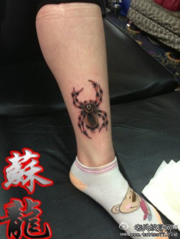 腿部精美时尚的一款彩色蜘蛛纹身图案_腿部纹身图案大全_纹身图吧