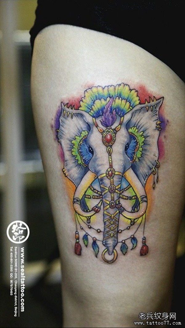 美女腿部精美漂亮的大象纹身图案_腿部纹身图案大全_纹身图吧