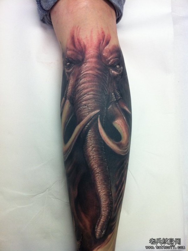 小腿上一款大象纹身图案_腿部纹身图案大全_纹身图吧