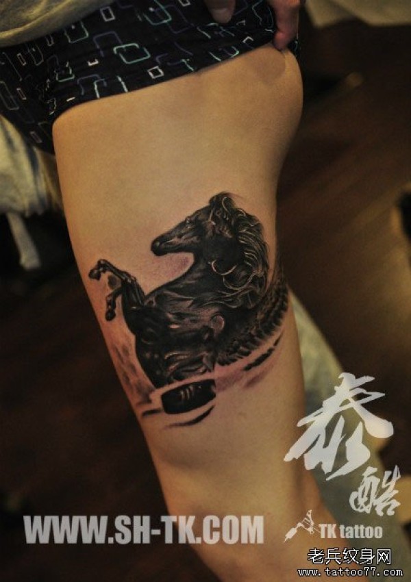 男人腿部超酷帅气的骏马纹身图案_腿部纹身图案大全_纹身图吧