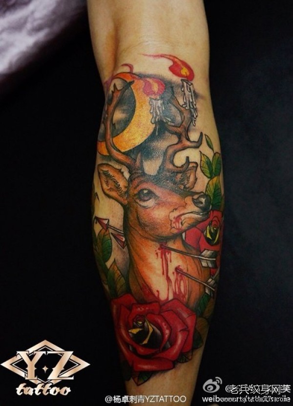 腿部时尚很酷的小鹿纹身图案_腿部纹身图案大全_纹身图吧