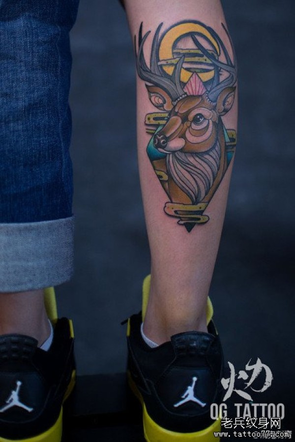 腿部潮流经典的鹿纹身图案_腿部纹身图案大全_纹身图吧