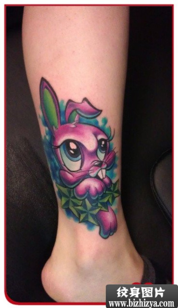 腿部个性的红色龅牙兔纹身作品_腿部纹身图案大全_纹身图吧