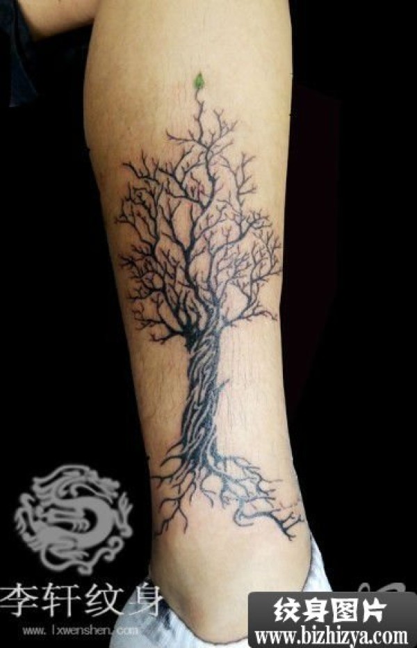 李轩作品腿部大树纹身作品欣赏_腿部纹身图案大全_纹身图吧