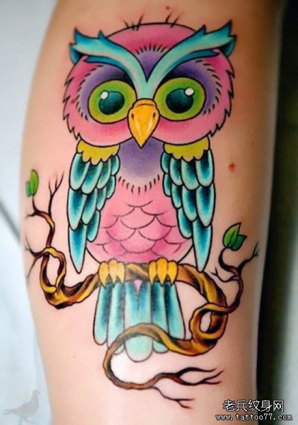 腿部精美的一款猫头鹰纹身图案_腿部纹身图案大全_纹身图吧