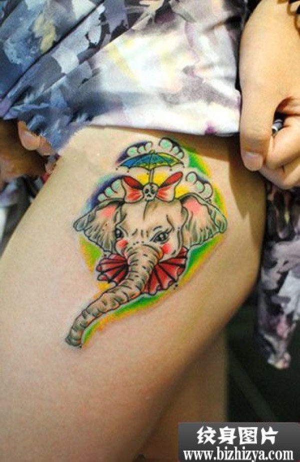萌小象大腿纹身图案图片_腿部纹身图案大全_纹身图吧