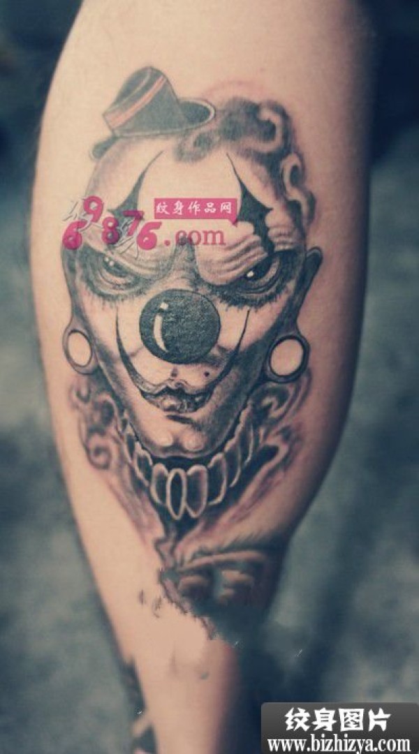邪恶小丑创意小腿纹身图案图片_腿部纹身图案大全_纹身图吧
