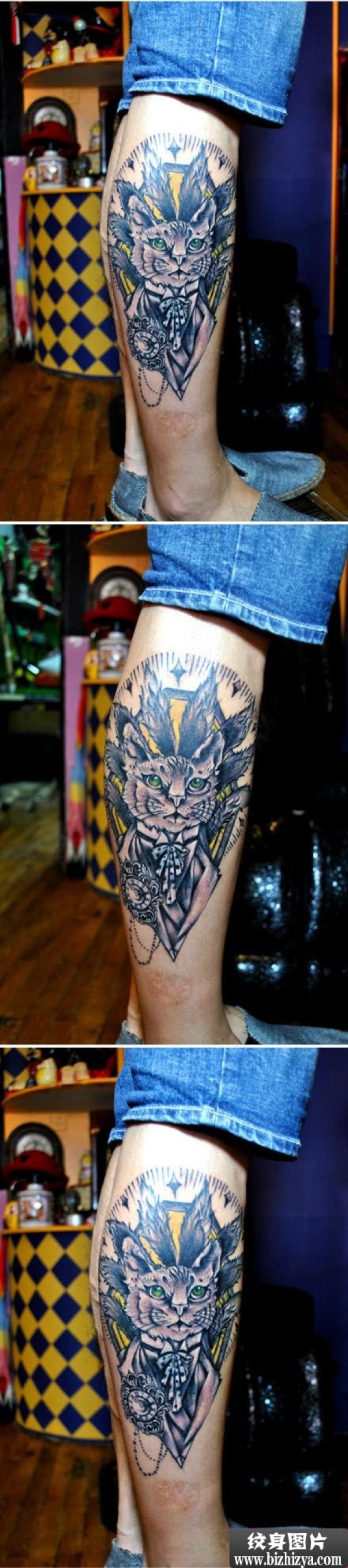 创意猫仙小腿纹身图案图片_腿部纹身图案大全_纹身图吧