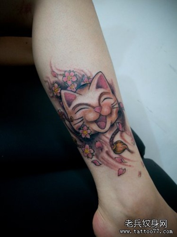 腿部可爱喜感的猫咪纹身图案_腿部纹身图案大全_纹身图吧