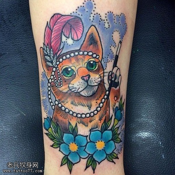 腿部彩色猫咪纹身图案_腿部纹身图案大全_纹身图吧