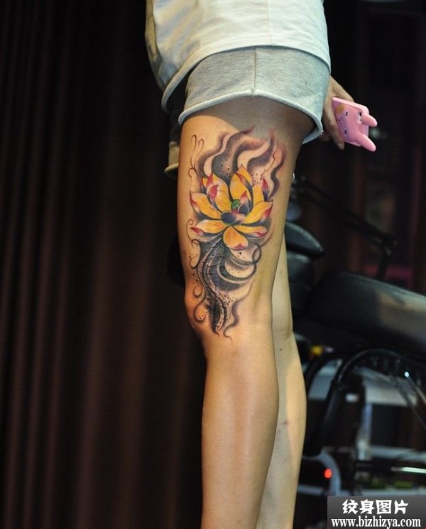 大腿云雾莲花纹身图案图案图片_腿部纹身图案大全_纹身图吧
