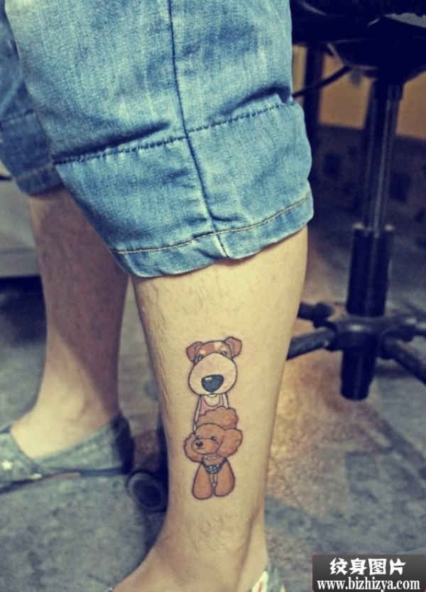 腿部可爱狗狗玩偶纹身图案图片_腿部纹身图案大全_纹身图吧