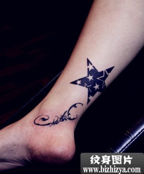 腿部个性星星时尚纹身图案图片_腿部纹身图案大全_纹身图吧