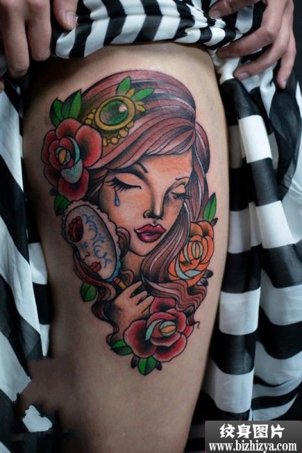 大腿高清落泪美女图图案图片_腿部纹身图案大全_纹身图吧