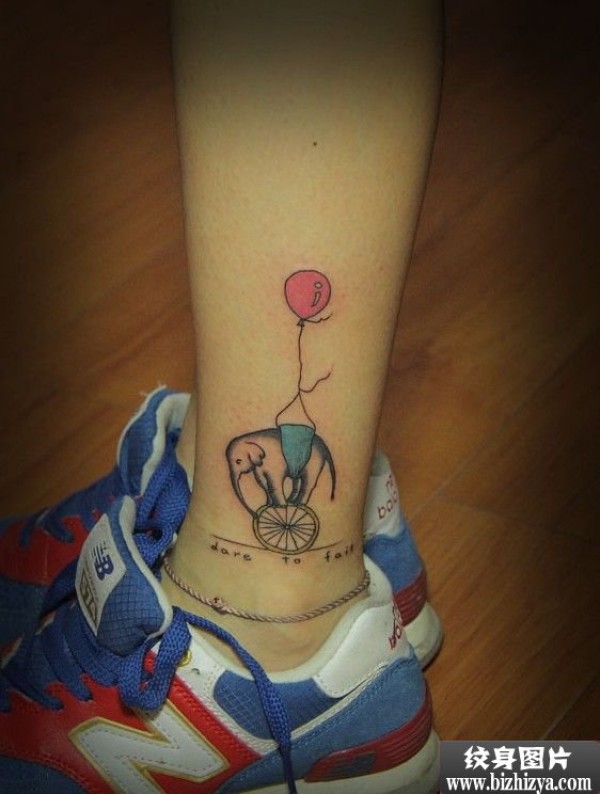 小腿走钢丝的大象图案图片_腿部纹身图案大全_纹身图吧
