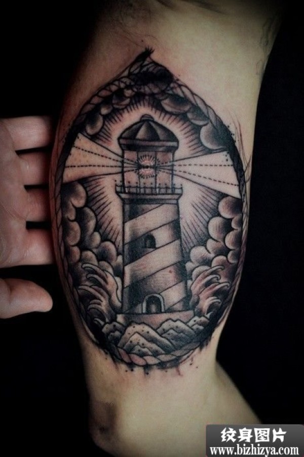 个性灯塔小腿纹身图案图片_腿部纹身图案大全_纹身图吧