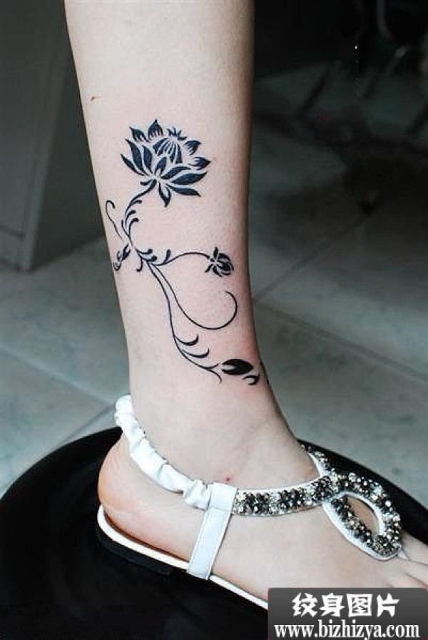清丽莲花时尚小腿刺青图案图片_腿部纹身图案大全_纹身图吧