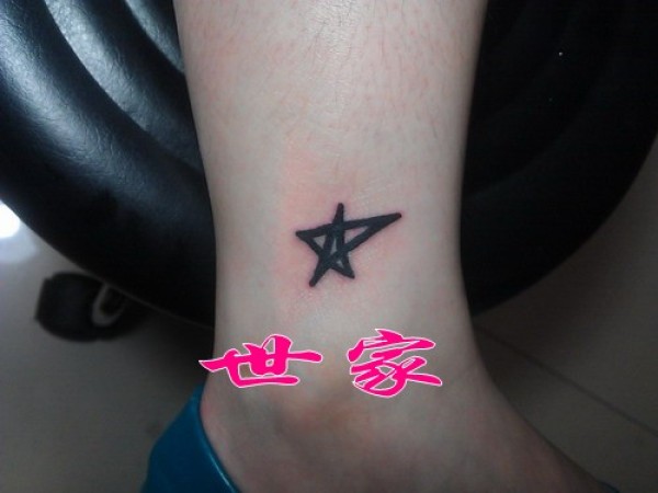 上海世家刺青66纹身图库作品小腿五角星纹身_腿部纹身图案大全_纹身图吧