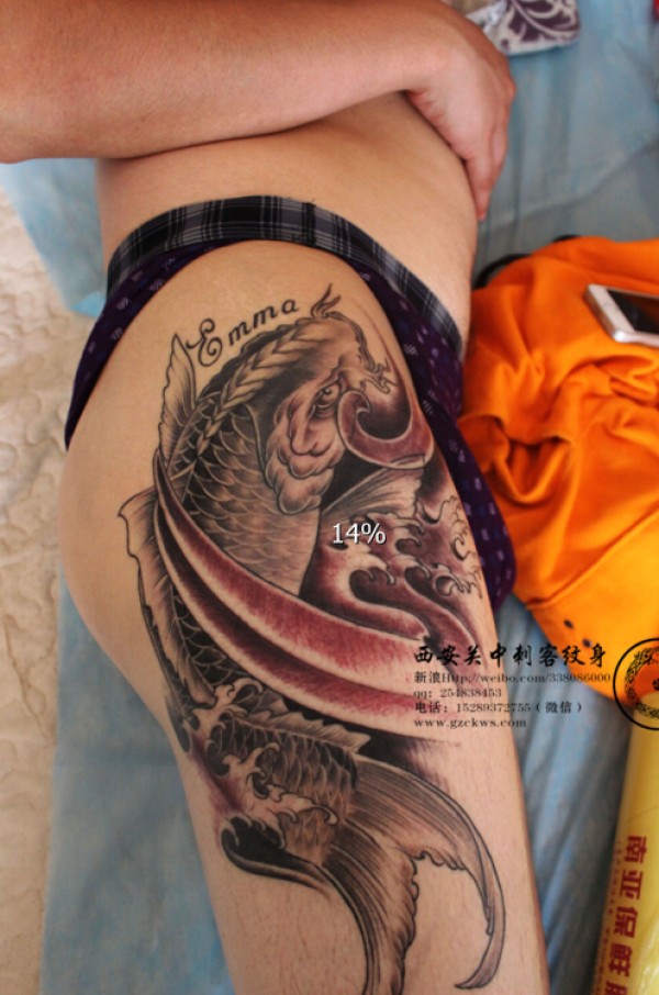 大腿鱼纹身 西安关中刺客纹身西安关中刺客纹_腿部纹身图案大全_纹身图吧