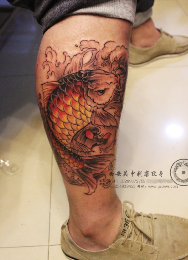 关中刺客小腿鱼纹身 拷贝西安关中刺客纹身_腿部纹身图案大全_纹身图吧