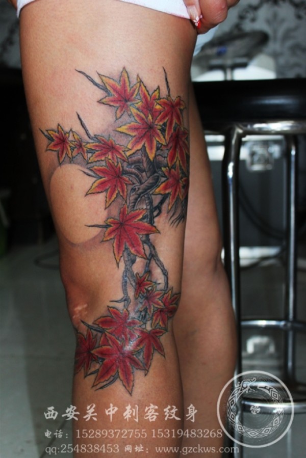 关中刺客腿部疤痕遮盖西安关中刺客纹身_腿部纹身图案大全_纹身图吧
