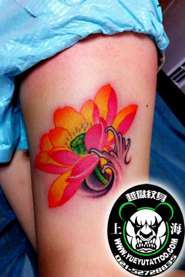 腿部荷花纹身图案上海越狱纹身店作品_腿部纹身图案大全_纹身图吧