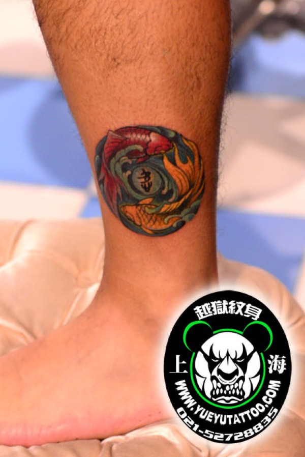 腿部双鱼戏水纹身图案_腿部纹身图案大全_纹身图吧