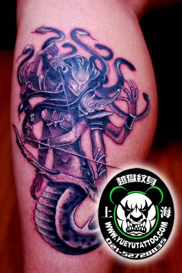 腿部美杜莎纹身图案上海越狱纹身店作品_腿部纹身图案大全_纹身图吧