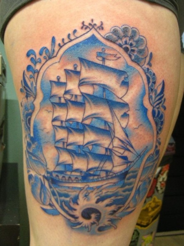 腿部时尚潮流的帆船纹身图案_腿部纹身图案大全_纹身图吧