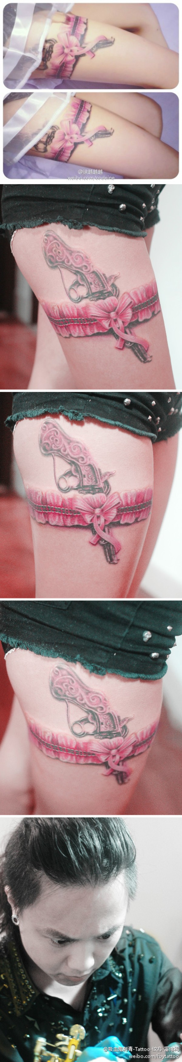 美女腿部时尚潮流的蕾丝手枪纹身图案_腿部纹身图案大全_纹身图吧
