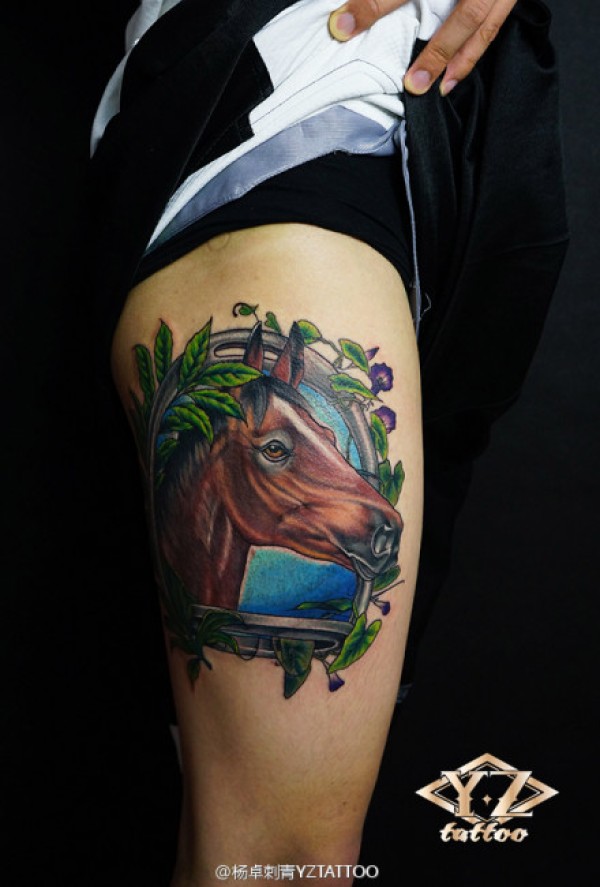 腿部时尚潮流的一款马纹身图案_腿部纹身图案大全_纹身图吧