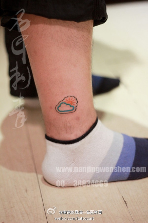 腿部一款小巧潮流的小太阳纹身图案_腿部纹身图案大全_纹身图吧