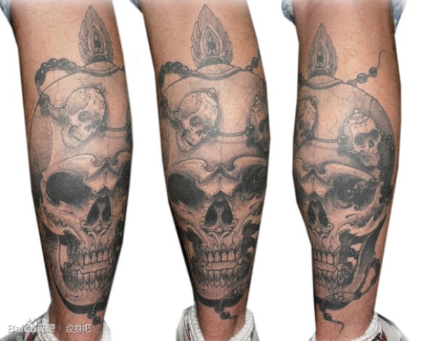 腿部时尚很酷的嘎巴拉纹身图案_腿部纹身图案大全_纹身图吧