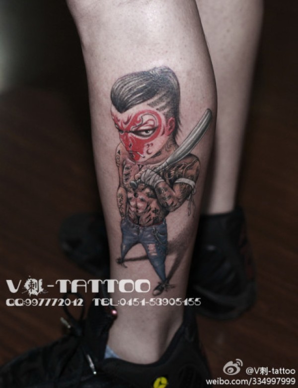 腿部时尚很酷的一款孙悟空纹身图案_腿部纹身图案大全_纹身图吧