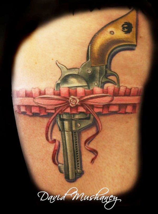 美女腿部时尚潮流的手枪纹身图案_腿部纹身图案大全_纹身图吧