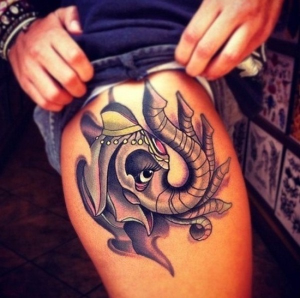 分享一款潮流唯美的大腿象神纹身图案_腿部纹身图案大全_纹身图吧