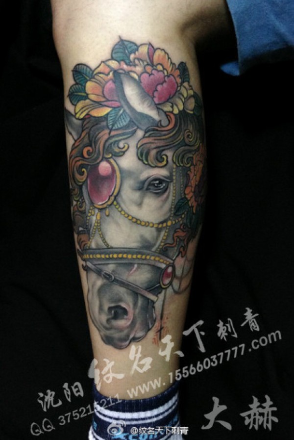 腿部潮流时尚的马纹身图案_腿部纹身图案大全_纹身图吧