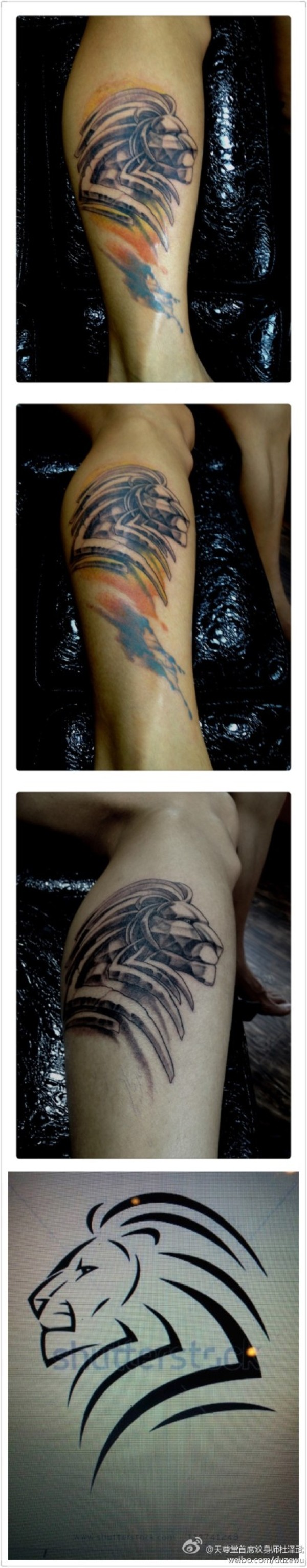 腿部潮流很酷的狮头纹身图案_腿部纹身图案大全_纹身图吧