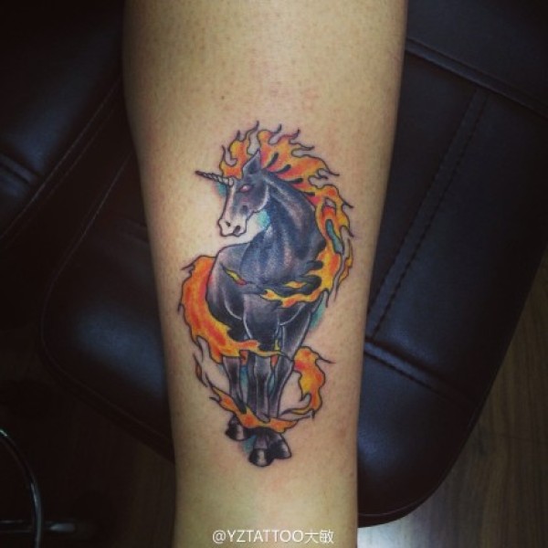 腿部潮流时尚的独角兽纹身图案_腿部纹身图案大全_纹身图吧