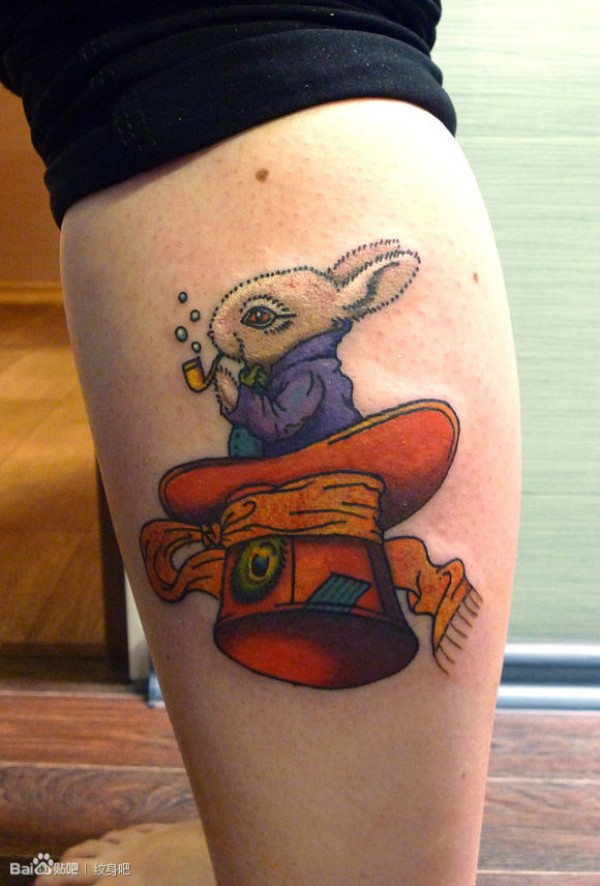 腿部可爱时尚的小兔子纹身图案_腿部纹身图案大全_纹身图吧