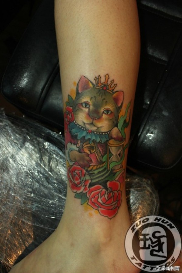 女孩子腿部可爱潮流的猫咪纹身图案_腿部纹身图案大全_纹身图吧